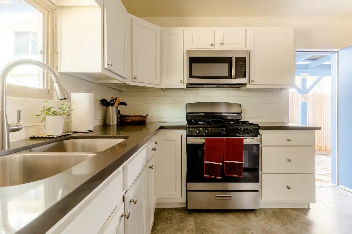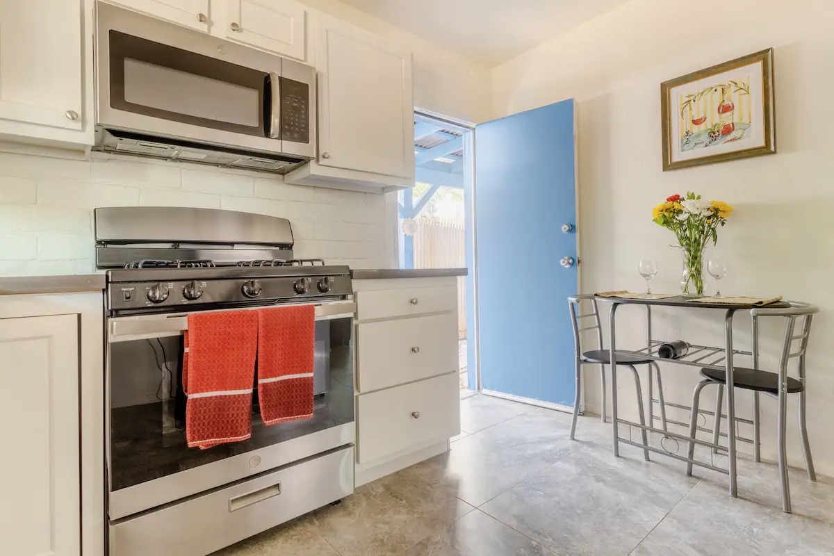 Pets: Pets are welcome! The neighborhood is quiet and a great place for walking with a small “pocket” park directly across the street. The entire property is gated so your pets can safely explore the grounds around the home.